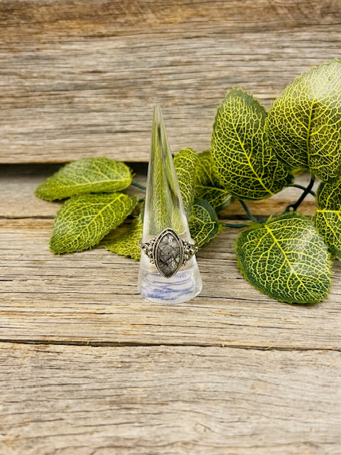 Embrace the golden threads of divine energy with this stunning rutilated quartz ring. Rutile's delicate needle-like inclusions are believed to amplify intention and channel spiritual clarity, making this piece a powerful companion for meditation and inner work. The transparent quartz base magnifies these ethereal qualities, creating a luminous window to higher consciousness. Perfect for those seeking to deepen their spiritual practice or carry protective, grounding energy throughout their day. A meaningful addition to any crystal lover's collection.
